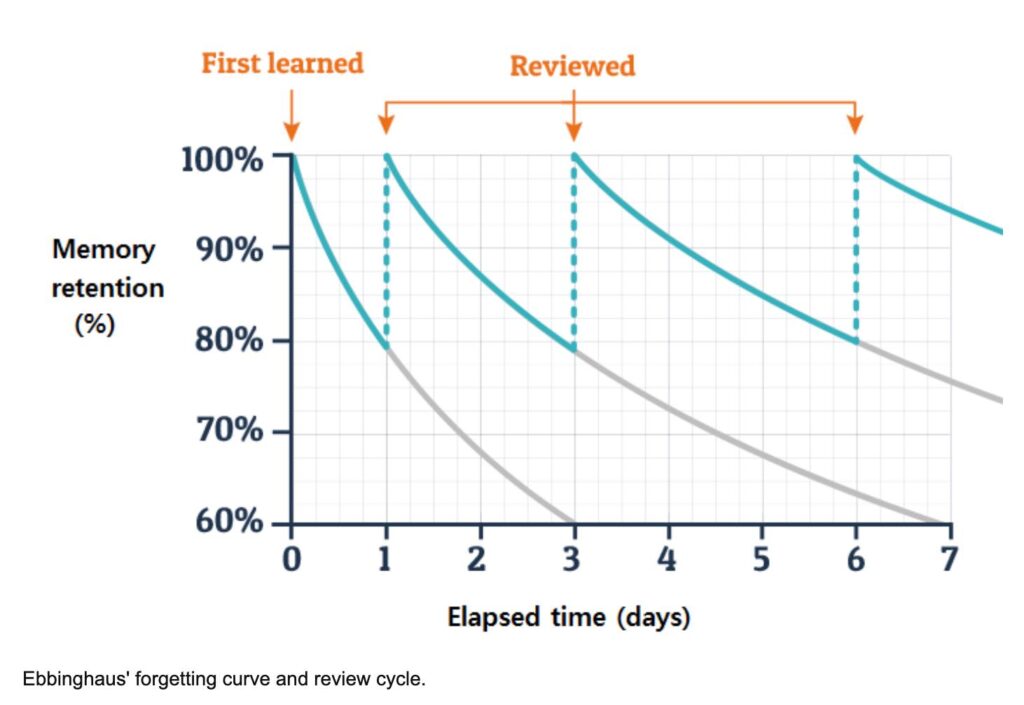 Timely review, even if spending a small amount of time each day quickly going through key points, is the most effective method.